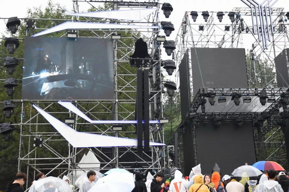 活動現(xiàn)場分為X舞臺和Y舞臺。Click#15的旋律剛一響起,就有大批觀眾一齊向Y舞臺涌來,粉絲們高舉著應(yīng)援牌,大聲呼喊,還有些小朋友干脆坐在了大人的肩膀上觀看表演。雖然現(xiàn)場下著淅淅瀝瀝的雨,但是絲毫阻擋不了大家高漲的音樂熱情。