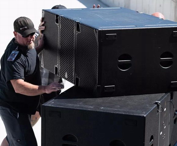 工作人員正在部署Adamsom E219 超低頻揚(yáng)聲器