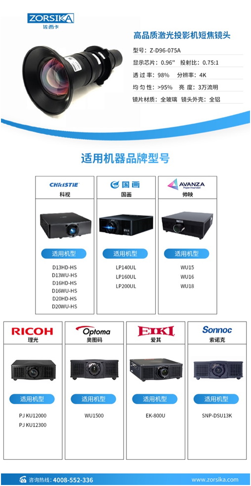 現(xiàn)如今佐西卡已經(jīng)擁有4大產(chǎn)品線,燈組、過(guò)濾網(wǎng)、工程氙燈、鏡頭,后續(xù),佐西卡將通過(guò)技術(shù)的不斷積累,相應(yīng)的產(chǎn)品線也會(huì)不斷的增強(qiáng),力爭(zhēng)做好行業(yè)最專業(yè)的投影機(jī)配件供應(yīng)商。同時(shí)還將繼續(xù)開(kāi)發(fā)適配更高亮度、更大顯示芯片、支持更高分辯率的的高透鏡頭,不僅是在廣角市場(chǎng),包括應(yīng)用在長(zhǎng)焦系列的產(chǎn)品。未來(lái),將會(huì)持續(xù)堅(jiān)持做行業(yè)領(lǐng)域最認(rèn)真專業(yè)的投影配件供應(yīng)商,以優(yōu)秀品質(zhì)和專業(yè)技術(shù)去打動(dòng)消費(fèi)者和合作伙伴。