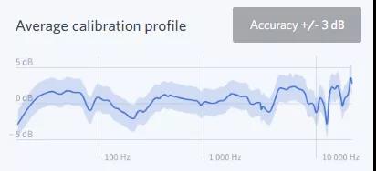 同型號的30個隨機選擇的耳機單元(顯示為面積)與1個特定單元(顯示為曲線)的頻率響應離散圖示