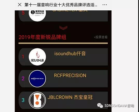 由中國音響網(audio160)主辦,2019年度中國第十一屆音響行業十大優秀品牌評選活動近500家品牌勇躍參加!其中“2019年度專業音響十大優秀品牌”評選活動自2019年11月4日開始投票,截止到2019年11月25日下午18:00結束,SDN.SONDANA(圣達納)團隊積極邀請社會各界及專業音響行業的良師益友,進行客觀公正的投票,最終獲得271324票!排名第一名!這是SDN.SONDANA(圣達納)品牌繼2010年、2017、2018年之后再次勇奪2019年度網絡投票冠軍!再次驗證了SDN.SONDANA(圣達納)音響在專業音響行業優秀品牌地位!