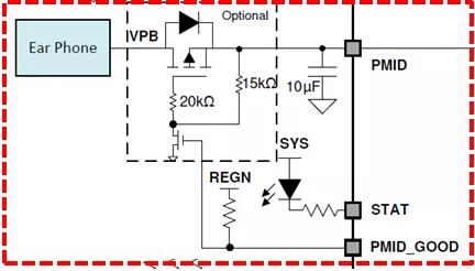 1. 當(dāng)適配器插入,仍然可以用PMID給耳機(jī)充電,此時(shí)電壓為輸入電壓,升壓停止工作。PMID_GOOD設(shè)計(jì)用來(lái)做輸入過(guò)壓過(guò)流保護(hù)的。