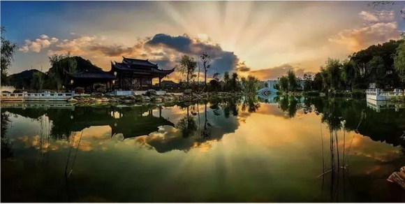 織金古城平遠古鎮是第十四屆省旅發大會重點項目之一,是以園林手法打造的文旅風情小鎮,項目預計總投資28億元,規劃占地面積2400畝,總建筑面積25萬平方米。其中,水域面積6.2萬平方米,綠化率達60%以上。以古鎮內的織金飯店為中心打造的亭臺樓榭,如散珠般鑲嵌在這片自然山水間。