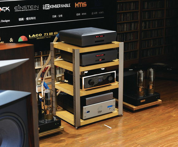 試聽組合的搭配當然也都是當下頂級的不二之選,包括美國Play Back Design的MPT-8轉盤播放器、MPD-8解碼器,Syrah Music Server流媒體播放器,德國Einstein愛因斯坦The Preamp膽前級等等