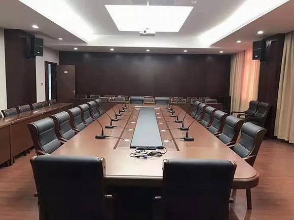 教學會議室主要用于日常會議、報告演示和會議表決,要求音響系統能夠提供清晰自然的語言擴聲,以滿足會議室中人聲的擴音及多媒體音頻的播放。為此,得勝(南京)工程團隊選用了EKS-121全頻音箱,該音箱靈敏度高、音色優美、層次清晰、人聲中低頻厚實高頻透亮自然,高音單元還能承受較長時間的大功率而不易于燒毀,可滿足會議長時間的討論。搭配設置的EKA-6A功放在音樂表現上,失真度低、頻響寬,能很好實現低音、中音和高音的平衡拾音,滿足清晰自然的語言擴聲要求。ECM-120會議麥克風作為本次會議音響系統的拾音設備,采用了心形指向拾音,可有效抑制聲音反饋及嘯叫;設計的XLR螺紋鎖緊方式,可牢固鎖定麥克風,杜絕松動噪音;采用碳鋼材料制作的軟管,耐彎折性強,可根據發言人需求進行彎折,滿足會議需求。
