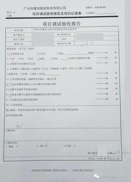 以上設備安裝調試完畢 ,得到了領導的一致高評,尤其是用途方面考慮功能的完善性,我們采用全數字的解決方案(會議室采用設備集中管理,通過平板電腦進行一鍵式操作)數字音頻采用平板調節控制聲音大小,操作簡單,方便,表示后續項目依然首選Meloarte品牌。