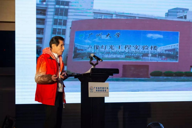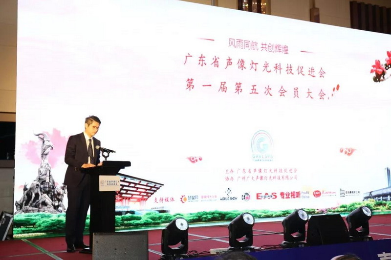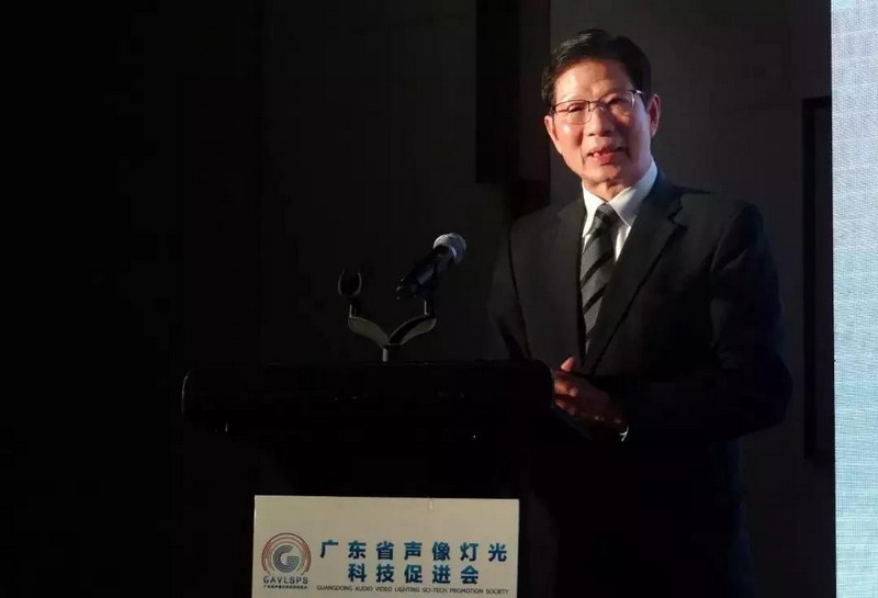 廣東演藝設備行業商會會長王銳祥上臺致辭,王會長對彭妙顏教授及科促會各位專家教授對行業給予的幫助表達了感謝,并希望在接下來的日子里兩個協會能夠加深合作,共同推動行業發展。