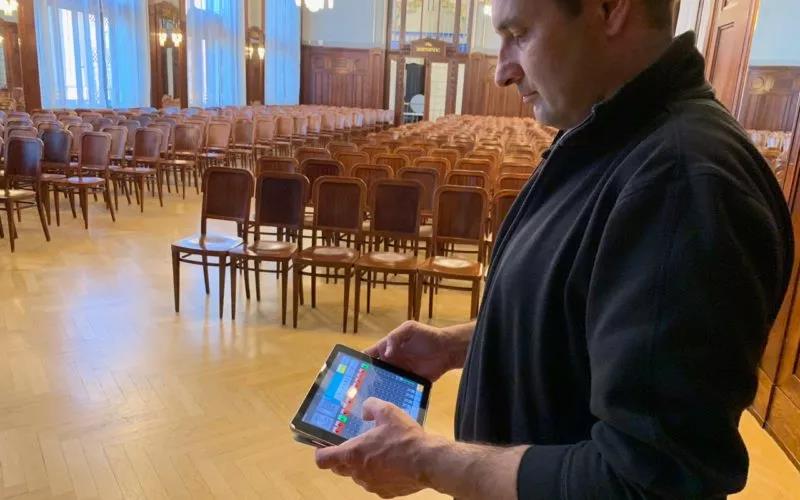 “現(xiàn)在,從場地的每個角落,我們都有iPad控制市政廳的所有設(shè)備。我們甚至在Music Data的辦公室對系統(tǒng)進行了遠程控制,這非常有價值可以立刻提供技術(shù)支持。通過連接線,我們可以從斯梅塔納大廳的主控制臺向大樓中的其他廳提供反饋,這是企業(yè)和政府活動的一大特色。”