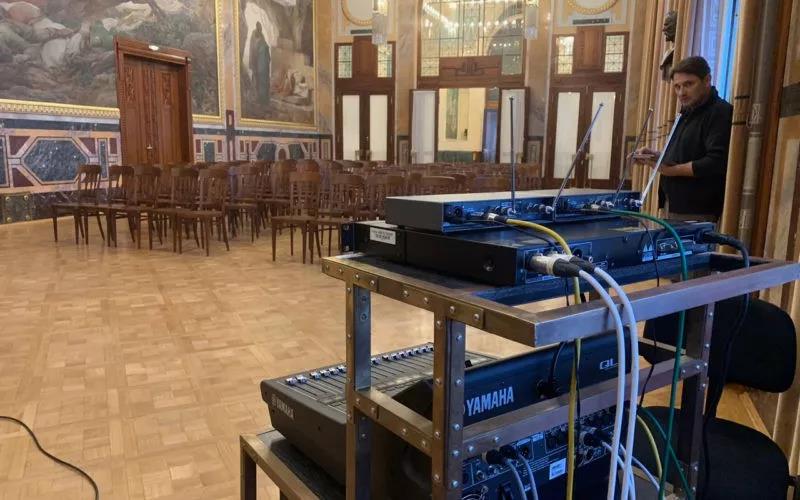 安裝過程中對細致處理令人印象深刻,包括小型NEXO音箱和斯梅塔納大廳的墻紙顏色搭配。21世紀(jì)音箱設(shè)備的到來并沒有影響市政廳內(nèi)各場館的重要歷史背景,使用轉(zhuǎn)入,轉(zhuǎn)出NEXO-Yamaha系統(tǒng)意味著在較小的大廳,可以沒有擴聲設(shè)備,占用地板和舞臺寶貴的空間。