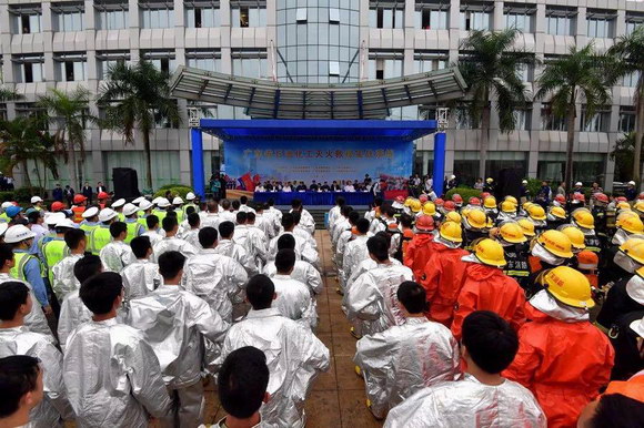 本次演練時(shí)長(zhǎng)約一小時(shí),調(diào)集廣州市消防支隊(duì)6個(gè)大隊(duì)共45輛消防車、2艘消防船到場(chǎng)救援,佛山、東莞支隊(duì)和總隊(duì)直屬特勤大隊(duì)共3個(gè)石油化工編隊(duì)和總隊(duì)全勤指揮部增援,應(yīng)急、公安、環(huán)保、衛(wèi)生、氣象、水務(wù)、電力等相關(guān)聯(lián)動(dòng)單位參與演練。
