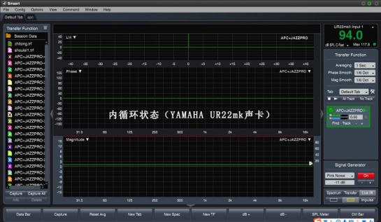 借助 Smaart V8 軟件+YAMAHA UR22mk II 聲卡,信號內循環狀態下界面,聲