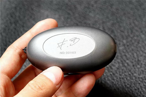 和市售TWS真無線藍牙耳機一樣,TWS600也同樣采用耳機+充電盒設計,保護盒為橢圓形蛋型設計,銀灰配色表面經過磨砂質感,拿捏在手上非常輕巧,充電盒背面還印有一組唯一的編號以及簽名,一條掛繩設計讓TWS600在攜帶性上要遠比其它同類耳機方便。