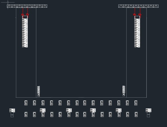 在低頻部分,此次演出VUE團隊通過計算和擺位,將低音音響部署成前后端火陣列,與傳統心型陣列相比,對舞臺的干涉較小,舞臺上低音的衰減量在15-18dB,能量能夠更充分地利用,集中地向觀眾區輸出。