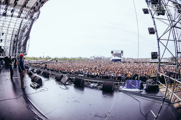 VUE中國為音樂節設計了全VUE音響系統解決方案。主擴系統包括吊掛于舞臺兩側的兩組(每組16只,共32只)al-12線陣音響以及放置于舞臺前方的28只hs-221超低音音響,另外,12只al-8線陣音響分為六組,均勻堆疊于低音音箱上,用作前場補聲。8只al-8線陣音響和2只hs-221放置于舞臺兩側前緣用作側方補聲。調音臺位于舞臺65米處,2只h-12和1只hs-28用作調音臺返聽。16臺VUE V3和5臺V6為所有線陣提供驅動。VUE的SystemVUE網絡監測軟件為所有揚聲器提供管理。