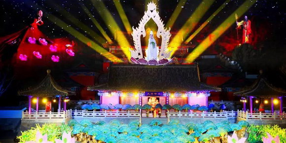 威海華夏城景區(qū),中國(guó)生態(tài)環(huán)保第一城,是華夏文旅集團(tuán)從2003年伊始?xì)v經(jīng)10余年修復(fù)威海龍山的44處礦坑,將環(huán)境治理與旅游開(kāi)發(fā)相結(jié)合的重要成果,歷經(jīng)“愚公移山”、“鳳凰涅槃”式的艱苦卓絕。現(xiàn)建成于各個(gè)采石場(chǎng)上的景點(diǎn)各具特色,有最全面展示堯舜禹時(shí)期歷史文化的禹王宮,集中展示膠東民俗特色的夏園;有在礦坑里打造的地下工程-威海人民防空教育館,礦坑上面覆土綠化,礦坑下面游客參觀(guān);有依照礦坑地勢(shì)而建的中國(guó)跨度最大的華夏第一牌樓、世界獨(dú)一無(wú)二的三面圣水觀(guān)音以及雜技、馬術(shù)等豐富多彩的傳統(tǒng)演出。 其中在礦坑里打造的會(huì)跑的實(shí)景演藝《神游傳奇》秀,開(kāi)創(chuàng)了自然景觀(guān)與人文景觀(guān)相結(jié)合的實(shí)景演藝先河,觀(guān)眾乘坐會(huì)跑的移動(dòng)式看臺(tái)可以欣賞到水、陸、空全方位的跨時(shí)空精彩演藝。