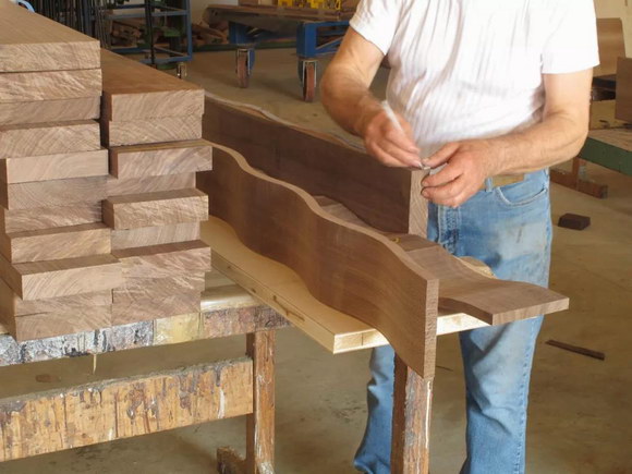在制作箱體時另外采取許多措施來防止箱體開裂,以Adamantes書架箱為例,箱體是由40根原木條粘合而成,而不是簡單以整片核桃木制作,每根木條都有溝槽加上特殊膠水黏合,經過兩個月的高壓定型才開始下一步工序。這種膠水黏性很高,貼合時膠水并不是完全硬的,中間可以容許小于0.1毫米的誤差,即便時間久了原木可能產生若干變形,中間的膠可以填補空隙,所以使用鑄和諧不用擔心箱體會有任何開裂現象,只管欣賞好音樂就是了。但是原木的密度不均勻,又是如何克服箱體諧振,盡量降低音染的?