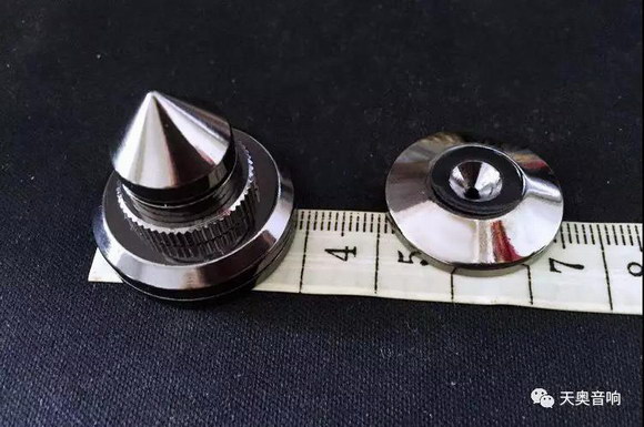 角錐一般是放在音響器材底部,放置的位置不同,得到的效果也是不同的,因為材料上每一點的振動幅度都不一樣。通常角錐使用三枚,以三角形放置,通過反復嘗試找到最佳的位置。角錐對CD機、喇叭,功放應用避震效果很顯著。