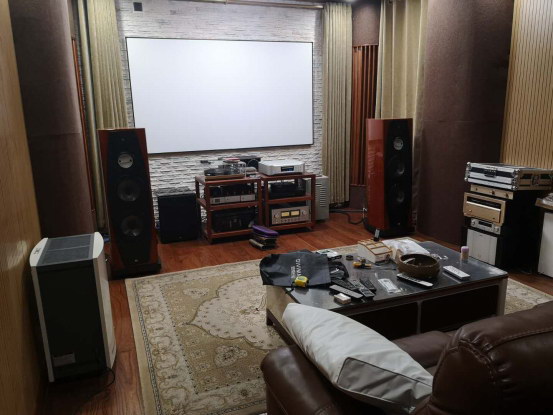 周一,激動人心的時刻到了,迎來了蔣老師。蔣老師在視聽室里面調音,為了不影響蔣老師工作,我跟升隆音響的王總在外面喝茶聊天。結果,過了十來分鐘,蔣老師就走出來說,夏哥,你可以進來聽聽看了。呃,調音是這么容易的事嗎?以前來調音的人最少都搗鼓個大半天的,有的還要弄個兩三天。這么短的時間就弄好?而且我也沒見他帶什么調音工具來啊??滿腦子問號。聲音不會打折扣吧?我坐在沙發上,音樂一放,全身雞皮疙瘩都豎起來了。交響樂全部樂器的細節都一一呈現出來,整個音場都打開了,什么樂器該在什么位置,都跟現場看到的一模一樣,而且我從來沒想象過我的音箱可以出那么厚實Q彈的低音頻,銅管在演奏的時候甚至能聽到空氣在管腔里面流動的聲音,那銅管的亮澤感無法言喻。再聽一曲口水歌,厚實,那喉音在顫動的感覺都聽的一清二楚,中高頻都能做到厚實的嗎?以前聽都沒聽說過,但一切都那么真實,就像真人在面前唱歌一樣。透過歌聲都能感受的到歌手在唱歌的時候投入了多少感情。那音樂的節奏感流暢無比。這還是我家里的音響嗎?