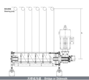 c.安裝方式靈活,不受嚴(yán)格的條件限制(如側(cè)天橋?qū)挾燃案叨纫螅?BR> d.出繩方向靈活:0~90度夾角范圍內(nèi),任意方向出繩