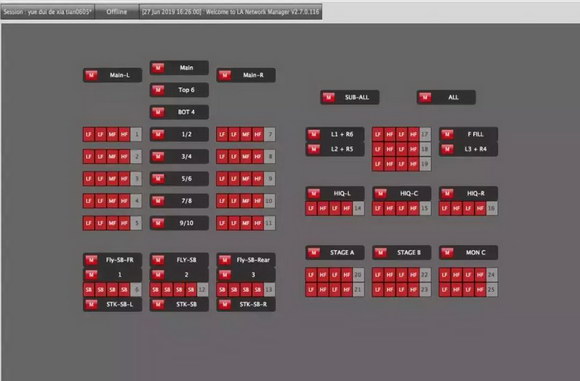 金:它有千絲萬縷的變化,因為每個樂隊的編制都不一樣,這代表音響要做很周密的案頭工作。音響設(shè)計不光是喇叭,而是整個系統(tǒng)的設(shè)計。其中就有信號的流程,整個現(xiàn)場揚聲器的覆蓋,包括PA、Monitor、OB之間的關(guān)系。包括人員的配置也需要慎重考慮。通過了前期排練(一周的排練)可以說是達到了我想要的效果。我們要做到極致,也就是所有的樂隊來了以后都能有效率、無障礙得完成排練和調(diào)試,同時音色是否到位、線路是否暢通、樂隊樂器間的平衡都是樂隊最關(guān)心的事情。
