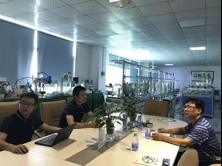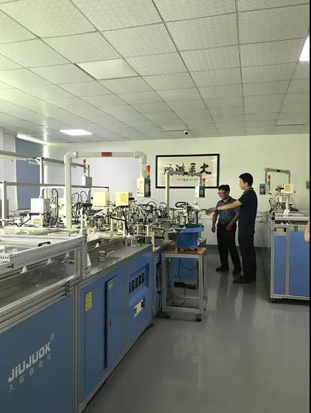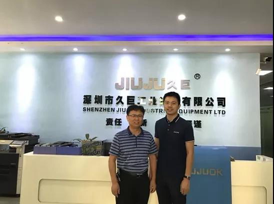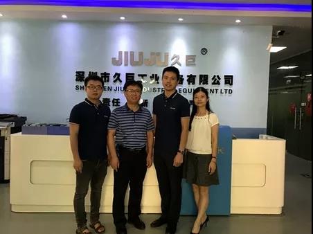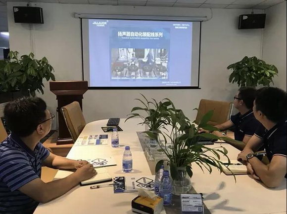 7月11日, 廣州市音響行業協會,張昌海秘書長一行抵達深圳 久巨工業設備進行工作指導同時參觀了久巨的辦公環境、生產線以及員工的精神面貌之后,協會領導對久巨近階段的表現及自動化設備發展潛力表示高度肯定。協會領導此行不僅表達了對會員單位的重視及關注,更給予了會員單位創新發展的不懈動力。