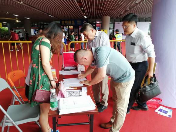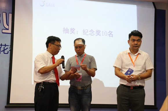 廣州市廣花展貿經營管理有限公司董事長林祖民和廣州市花都區電子行業協會秘書長徐偉根抽取紀念獎