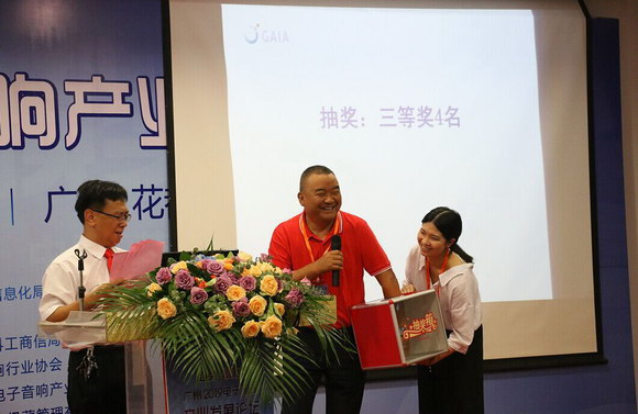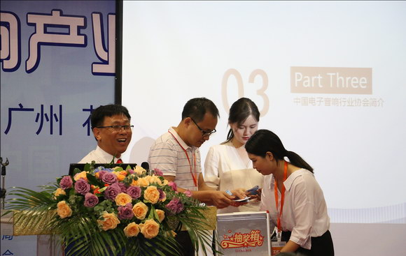 協會理事、東莞市國燦電子科技有限公司董事長劉兆勇抽取三等獎(獎品:獅樂音響)