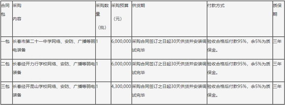 1.項目名稱:長春市第二十一中學、長春經開力行小學、昆山小學網絡安防廣播等弱電裝備采購項目
