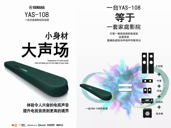 和電視機比較的話,受益與單元數量的增多,體積的增大。YAS-108的低頻強悍很多,原來影片中的爆炸聲真的就是點到為止,現在用108之后總算能感受到一波沖擊波了。