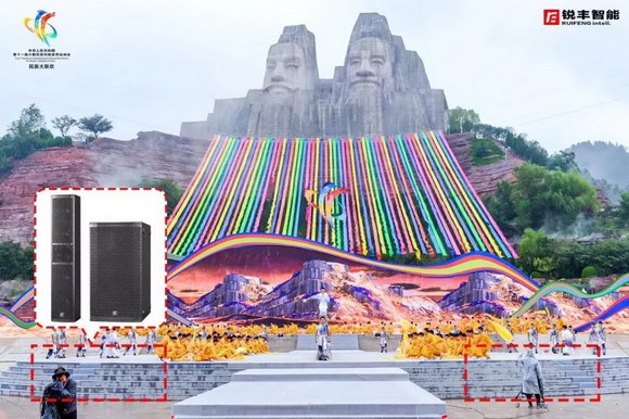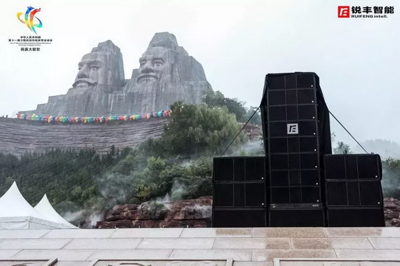民族大聯歡由著名音響設計師——宋多多老師擔任音響總設計,音響總監為宋仁一老師。由銳豐智能為音響技術團隊,現場采用了"RF"—GTS線陣列揚聲器作為主擴聲,ML迷你陣列揚聲器、TX多功能系列揚聲器、以及周邊設備等產品。