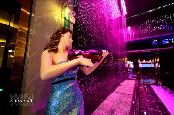 “仁者樂山,智者樂水,聚水為財,流水生財”自然界中,草木無言,山水無知,自古長江東逝,黃河奔流,當其成為視覺的范疇,無知無覺的水便會化作"文化精靈"。輝瑞大成設計師以“水”為載體,運用在KTV的大廳墻面,氣勢宏博,視覺沖擊強烈,成為KTV具有鮮活生命的審美載體。