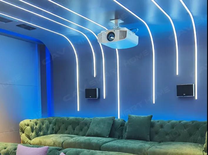 在疫情期間,這套系統實實在在體現了他的價值,為家人帶來了更多快樂和陪伴。影音室采用了科幻風格,運用燈帶營造科幻感覺,讓人恍若置身星際。從裝修風格、觀影效果、K歌聲效到場景,還原業主都表示十分滿意。