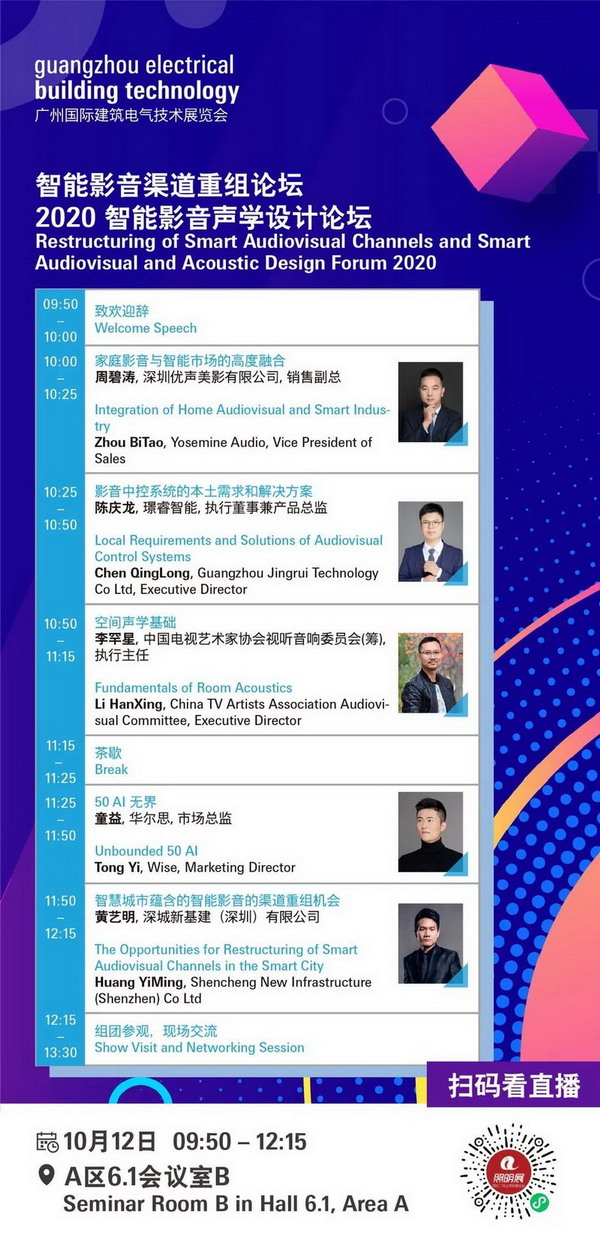 2020年10月12日,華爾思2020新品在智能影音聲學(xué)設(shè)計論壇承辦下,在廣州國際建筑電器技術(shù)展覽會中精彩呈現(xiàn)。共展示了華爾思曲邁系列X7、X8兩款主機(jī)、P1低音炮、華爾思U5旗艦機(jī)和華爾思B200等五款主打新品。新品聚焦AI與AIoT,旨在打造全新的多場景背景音樂新體驗。