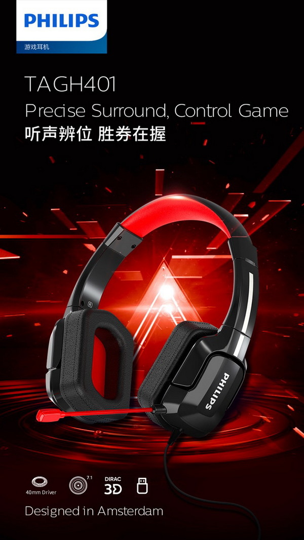 毫無疑問,采用Dirac 3D Audio技術電競耳機能獲得更出色的“聽聲辨位”效果,而采用該技術的代表產品飛利浦GH401無疑成為電競玩家們的神兵利器。