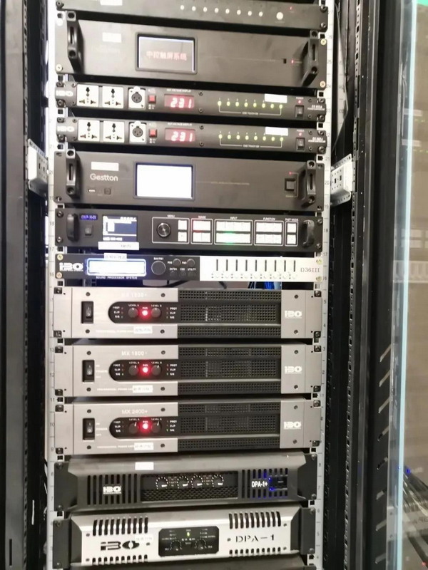 余杭區(qū)第二人民醫(yī)院報告廳選用了iBO LA-i6線性陣列系統(tǒng),左右聲道主擴聲為LA-i6雙6.5寸線陣音箱(左右各4只),滿足了聽眾區(qū)的高聲壓級和均勻度;臺唇補聲使用了F-112同軸全頻音箱,F(xiàn)-108則為中后場補聲音箱,系弦還包括配套的功放和數(shù)字處理器。