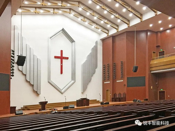 銳豐智能“RF”整套音頻擴聲系統功能強大,操作簡單,有效地提高了教堂的擴聲效果,創造了一個優質的視聽環境,為兄弟姊妹們的教會活動提供了擴聲保障,各個方位的教眾都能清晰地聽到舞臺的聲音。