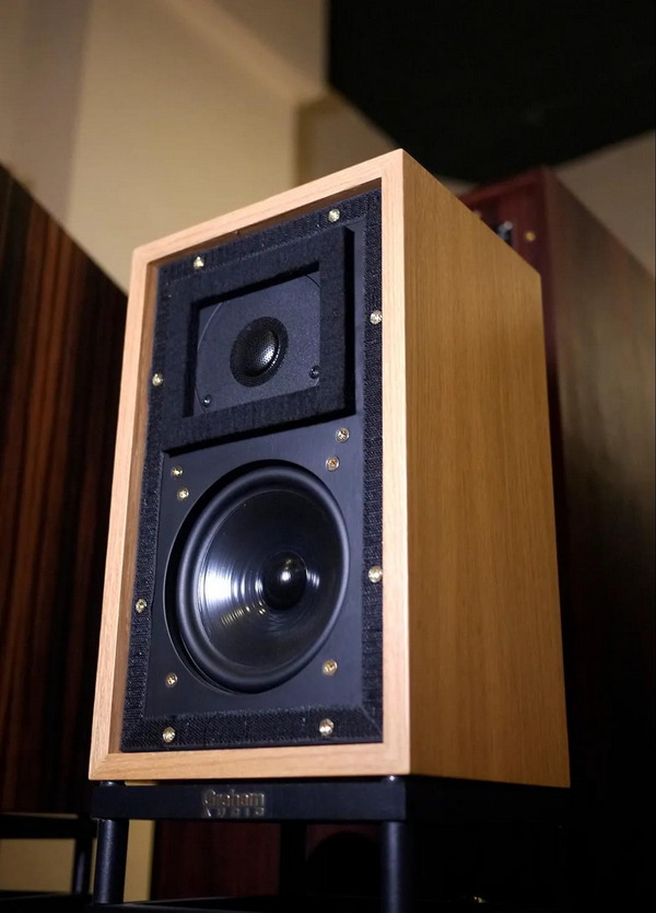 英國Graham貴涵的名字全稱是Graham Professional Sound & Video,說明他們是生產專業音頻和視頻產品的公司。和在雜志社試聽的那對紅色木皮的版本略有不同,佳進音響用來試音的這對LS3/5A是淺黃色木皮,也就是Graham Audio貴涵官方廣告主打的顏色。不同顏色木皮的音箱對聲音有影響嗎?答案是有的,但輕微得基本可以忽略。反而影響比較大的是聚酯“鋼琴漆”的處理方式,很多音箱原本是木皮版本的,為迎合市場需要做成“鋼琴漆”后,聲音會變得更干凈些。另外,對于LS3/5A而言,BBC的認證白皮書注明是需要使用樺木多層板來制造箱體的,但如今很多復刻的版本都改用了MDF中密度纖維板,先不說孰優孰劣,這一點無疑是會影響聲音表現的。