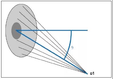一個極端是剛性表面做活塞運動,整個表面的運動幅度和相位是一致的。在這種情況下,指向性僅取決于振膜上各個輻射點之間的路徑距離以及接收點的位置,如圖4。當輻射聲波的波長小于振膜尺寸時,來自振膜不同區域的輻射之間開始出現干涉,這種干涉隨著偏離軸向而變得愈發嚴重。因此,其輻射模式呈現出強烈的波束,如圖5。