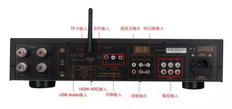 AD-66D除了增加光纖、同軸、USB-Audio等傳統DAC解碼以外,連HDMI-ARC都考慮到了!可見設計師之用心可昭日月啊!如此一來,不僅是CD機、播放器、DVD、藍光機還是筆記本、臺式電腦等各種音源,就連電視機也能通過一根HDMI線便可實現數字傳輸!配合66D自帶的SW超低音輸出,用戶增加一只有源低音炮,在客廳組成2.1小型影院,并非難事!種種升級都很大程度上擴充了僅有單純的Hi-Fi雙聲道功放的用途和便利性!