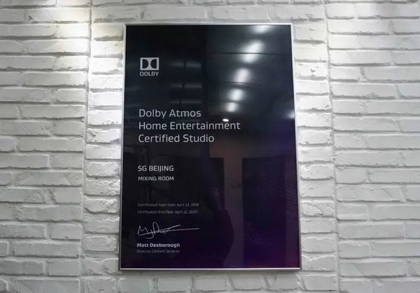 回想起 Dolby 認證的過程,衣毛毛老師笑著說:“我覺得 Dolby 公司的王萌老師是一個眼里揉不進沙子的人,所有 Dolby 混錄棚都要經過他的測量、調試和鑒定,才能掛上 ‘ Dolby 認證’ 的牌子。我們的混錄棚在王萌老師的經驗中,屬于非常順利的,只跑了兩趟就達到了測試標準,通過了認證。”
