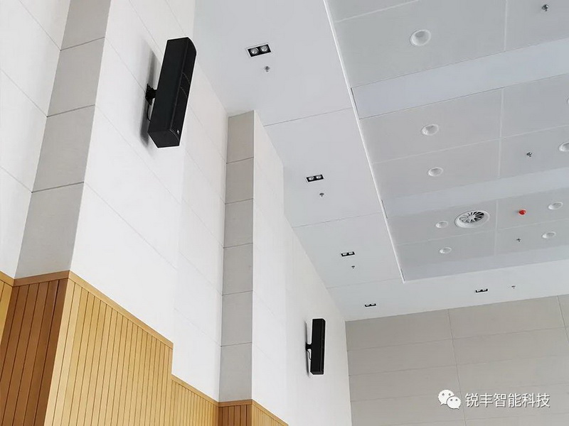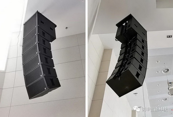 各個(gè)會(huì)議室的擴(kuò)聲系統(tǒng)左右主擴(kuò)揚(yáng)聲器采用了2只4×4寸二分頻迷你陣列音箱ML5H,該音箱采用高性能革新鋁材質(zhì)箱體設(shè)計(jì),性能卓越,內(nèi)置4x4寸中低音單元和1個(gè)1.25寸高音單元,子彈頭式高音相位塞搭配80×40度指向小號(hào)角擴(kuò)散設(shè)計(jì)。輔助揚(yáng)聲器采用了4只8寸同軸吸頂式MQ-8C,該款吸頂音箱是同軸聲源為同一點(diǎn)發(fā)聲,聲像還原更準(zhǔn)確,更自然真實(shí)。