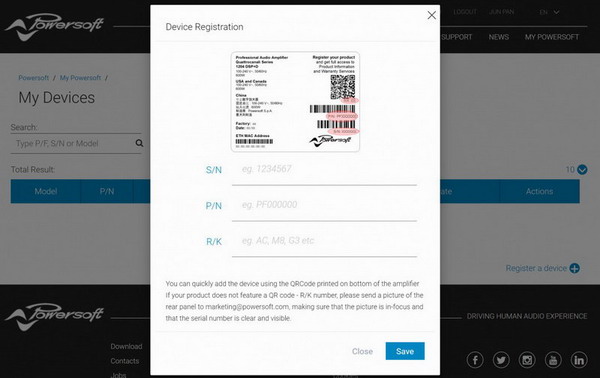 在產(chǎn)品開始使用頭30天內(nèi)可在MyPowersoft(個(gè)人賬戶)激活此項(xiàng)服務(wù)。