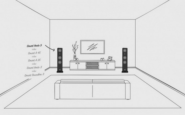 如果只是停留在傳統(tǒng)的無線產(chǎn)品基礎(chǔ)上,那又太小看這個德國音響老牌的技術(shù)實(shí)力了。相較于目前市面上大多數(shù)產(chǎn)品簡單的左右聲道固定式的定義。Smart全系列可以實(shí)現(xiàn)的組合可遠(yuǎn)不止這些。
