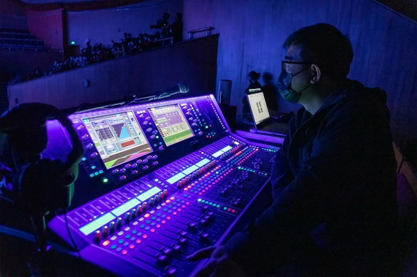 之前沒有使用過Allen&Hearh dLive S7000調音臺,演出前與冀翔老師進行了溝通。先大致了解了操作界面。這張控臺不僅外觀炫酷,功能強大,操作界面也非常友好。幾乎所有的常規操作都很快在控臺界面和iPad上找到幾種快捷的操作方式。另外我非常喜歡它的屏幕抬高的斜度設計,讓視野幾乎可以同時看到控臺界面和舞臺,當樂手向調音師舉手示意時就不容易錯過溝通的機會。