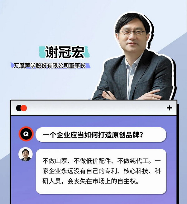 關于萬魔聲學科技有限公司 1MORE中文音譯為萬魔,是萬魔聲學科技有限公司耳機品牌名稱,成立于2013年,是一家專注于研發設計與智能軟硬件開發的聲學品牌,1MORE運用先進且專業的技術,嚴苛的檢測體系,致力于為熱愛音樂的用戶呈現品質卓越與更全面價值 ,主要產品有耳機和萬魔熊智能公仔。