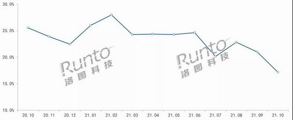 根據洛圖科技(RUNTO)線上數據顯示,10月屏幕音箱的銷量占比達到17.2%,較去年同期下降8.4個百分點,較上月下降3.8個百分點。