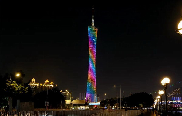 廣州塔筑每天晚上準(zhǔn)時開始色彩的變換,炫麗光彩吸引無數(shù)當(dāng)?shù)鼐用窈陀慰偷哪抗猓渤闪藦V州的網(wǎng)紅打卡勝地。