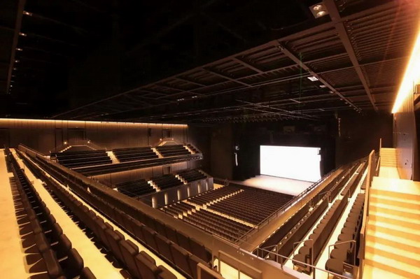 大廳后面的滑動墻體可以打開,從外面可以看到舞臺,并設有一個室外座位區。大廳本來有2448個座位,室外可容納628個座位。當大廳一樓做成站立空間時,大廳可容納2940人,在結合室外站立空間,最大可容納3600人左右。