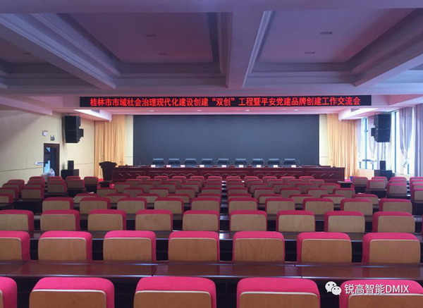廣西桂林某信訪局會(huì)議室,采用了銳高智能DMIX品牌音箱、功放、會(huì)議話筒、處理器等擴(kuò)聲系統(tǒng)設(shè)備。