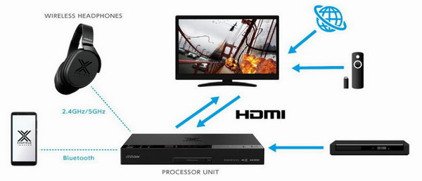 而當EXOFIELD關(guān)掉,切換為耳機模式,你立馬體驗到只有耳機兩邊單元所產(chǎn)生的“平面”效果,這種聲音體驗的差別可謂木耳也能分辨。而使用EXOFIELD方案后,體驗自然更加過癮和刺激的。通過這種觀影方式,鑒于預(yù)算和小空間環(huán)境的玩家,也可以很不落伍地暢享7.1.4“全景聲”的立體聲效,而對于影院達人,希望在深夜觀看大片,相信JVC EXOFIELD XP-EXT1“全景聲”耳機系統(tǒng)將成為您全新的法寶和解決方案。
